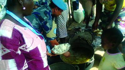 Bomi County hosted a number of activities in December including a city clean-up across Tubmanburg City that was orchestrated by the Mayor’s Office in commemoration of the International Volunteer Day. This brought together not only the local community but also the Liberia Red Cross, NGOs, youth groups, NIBATT 28 and the Nepalese FPU. The latter also hosted a medical camp in Bejah Town, Senjeh District, which benefitted over 100 adults and children. In addition, the Nepalese police gave students of Bejah Elementary School a taste of their country’s cuisine by distributing food.