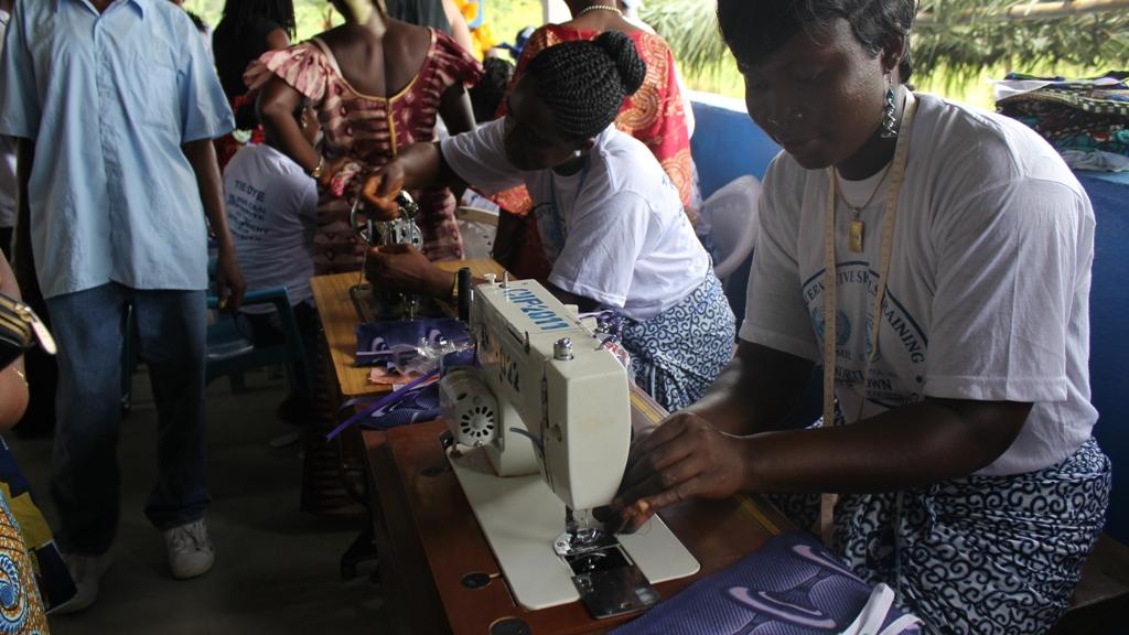 “I tell God ‘thank you’ for teaching me tie and dye because I was not doing anything just sitting at home,” said 41 year old Miatta Beng. Her words were echoed by Marion Boakai, 51, who said, “I came from nowhere and they have put me somewhere.” Boakai now looks forward to earning a steady income from tailoring.