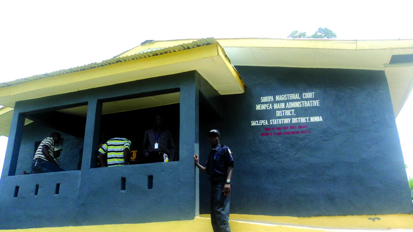 Aware of the important role effective law enforcement and administration of justice plays in consolidating peace and state authority, as well as accelerating development in a post-conflict environment, UNMIL continues to help Liberia revamp its war-ravaged judicial and security sector with the construction and renovation of rule of law facilities. Two such facilities – a courthouse and police station – constructed through UNMIL Quick Impact Projects, were recently turned over to the Government of Liberia at Sokopa, in Saclepea Statutory District of Nimba County.