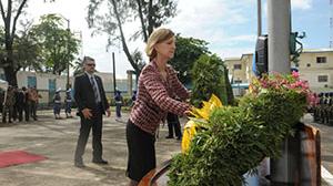 The Vice President of the Republic of Liberia, H. E. Joseph N. Boakai, and the Special Representative of the Secretary-General (SRSG) and Coordinator of United Nations Operations in Liberia, Karin Landgren, laid wreaths in memory of fallen peacekeepers.