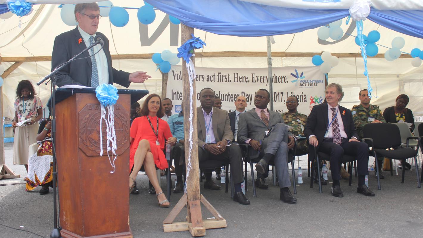 UNMIL’s Deputy Special Representative of the Secretary-General (DSRSG) for Political and Rule of Law Mr. Waldemar Vrey, praised the all UN volunteers that have served in UNMIL since 2003, which amounts around 1500 UNV’s, stating that on this international volunteer day “let us recognize the immense value that all of you are making towards the sustainability of our planet”.