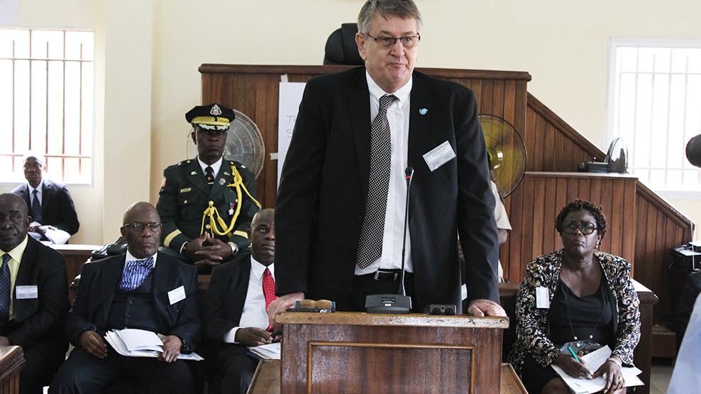 Gbarnga, 18 May 2017 – UNMIL’s Deputy Special Representative of the Secretary-General (DSRSG) for Political and Rule of Law, Mr. Waldemar Vrey today visited Gbarnga Bong County. At the opening of a three-day Judicial Retreat under the theme “Strengthening the Rule of Law Through Enhanced Judicial Performance”, DSRSG Vrey called on the National Elections Commission to ensure that the presidential and general elections scheduled for October this year, are transparent, inclusive and peaceful.