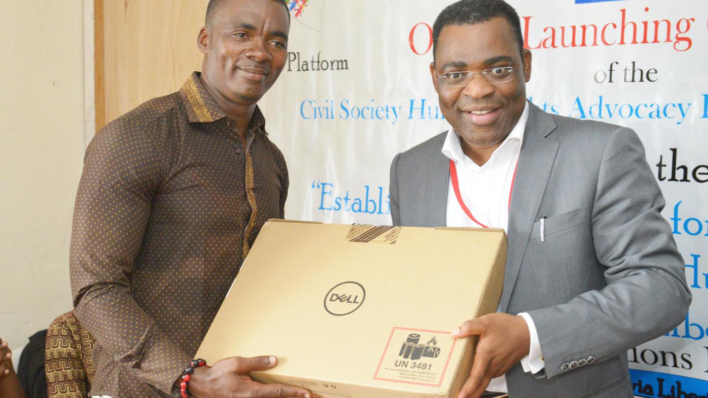 Monrovia - UNMIL, as part of support to the protection of human rights in Liberia, handed over equipment and stationery to the newly formed Civil Society Human Rights Advocacy Platform.