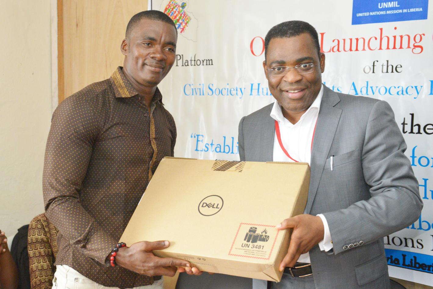 UNMIL, as part of support to the protection of human rights in Liberia, handed over equipment and stationery to the newly formed Civil Society Human Rights Advocacy Platform.