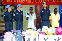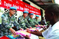 The commanding officer of CHINTPT-16, LTC FU Jinlu, accompanied by 30 fellow peacekeepers, paid a visit to Taylor Public School in Tubmanburg, Bomi County on 24 May 2014 and donated stationaries and sports goods to the school…