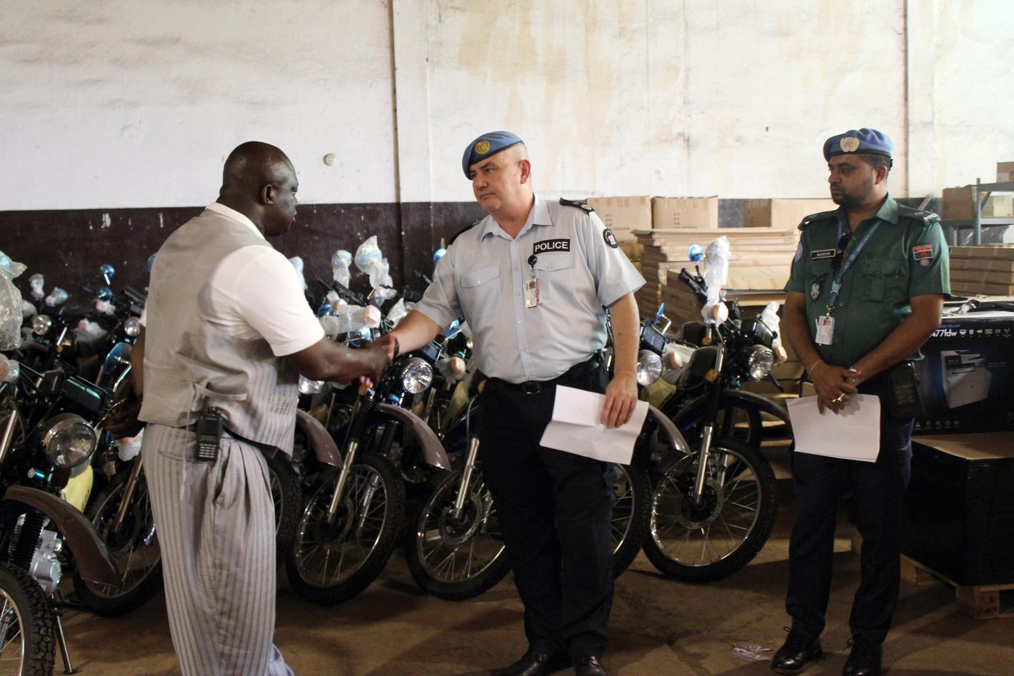 UNMIL handed over items and equipment to the Liberia National Police (LNP) and the Liberia Immigration Services (LIS) through an Integrated Border Management (IBM) project and the Community Policing/Engagement (CP/E) project.