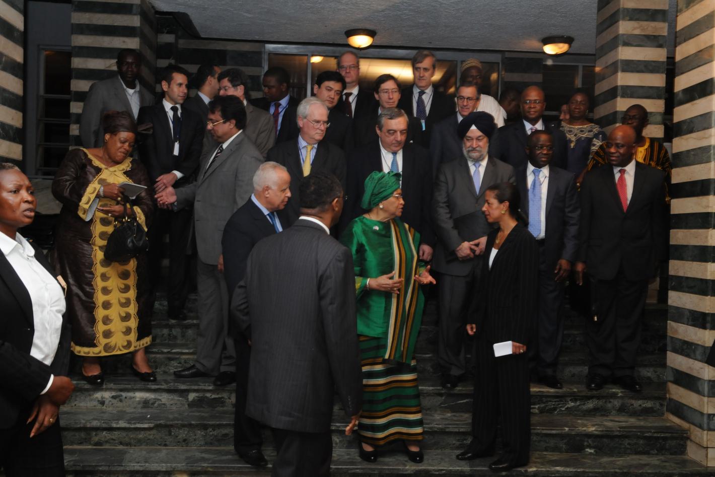 We will be addressed by Her Excellency Madame Ellen Johnson Sirleaf, President of the Republic and two Co-Chairs leading the United Nations Security Council delegation, Ambassadors Susan Rice of the United States of America…