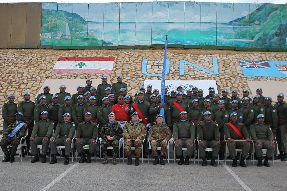 UNIFIL Head of Mission and Force Commander Major General Stefano Del Col (front row, 5th from right) with the last batch of Fijian peacekeepers, 20 December 2018. Peacekeepers from one of UNIFIL’s oldest troop contributors…