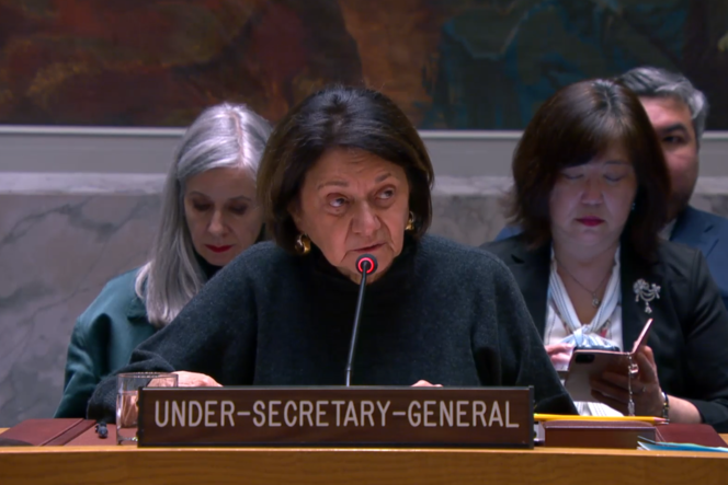 Sigrid Kaag, Senior Humanitarian and Reconstruction Coordinator for Gaza, briefs the Security Council meeting on the situation in the Middle East, including the Palestinian question. (UN Photo/Loey Felipe - 24 April 2024)
