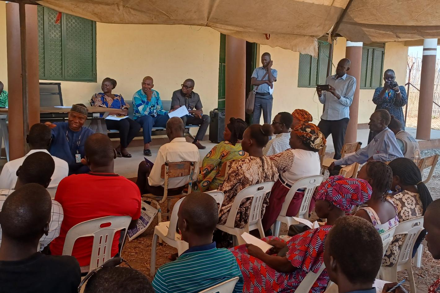 Community leaders, including chiefs, women, youth leaders, and elders, gathered at an UNMISS outreach event to discuss concerns about the security and economic situation as well as steps needed to secure sustainable peace. Photo by James Sokiri/James Ohisa/UNMISS.
