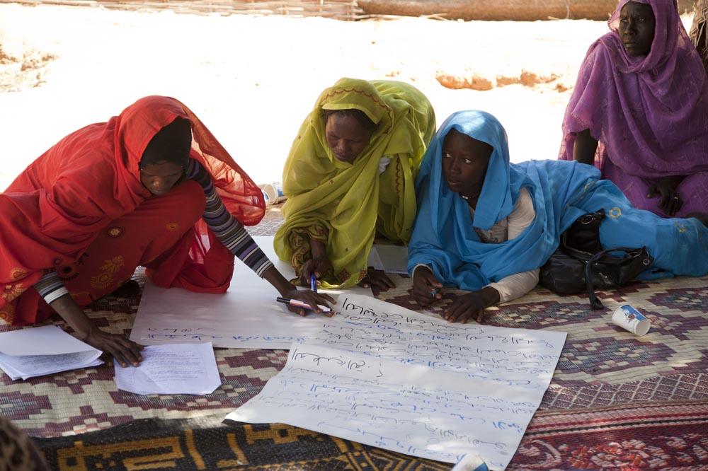 On 19 December 2012, women from the Zam Zam camp for internally displaced people work on a project during a forum organized to raise awareness on issues related to gender-based violence. Photo by Sojoud Elgarrai, UNAMID..