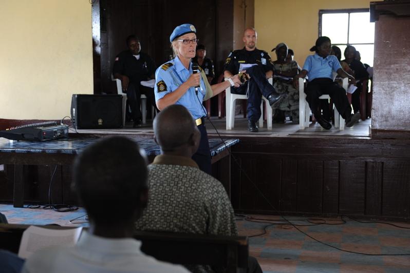 Kakata, Margibi County: On Saturday 3 November, six women police officers from the Liberian National Police (LNP), in collaboration with members of UN Police (UNPOL) from Sweden, held a public workshop on rape in Kakata, in…