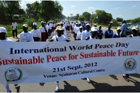 21 September 2012 - Hundreds of spectators gathered today at Juba's Jebel Market to watch an UNMISS-sponsored theatre production on peaceful ways of resolving conflict to mark International Day of Peace.