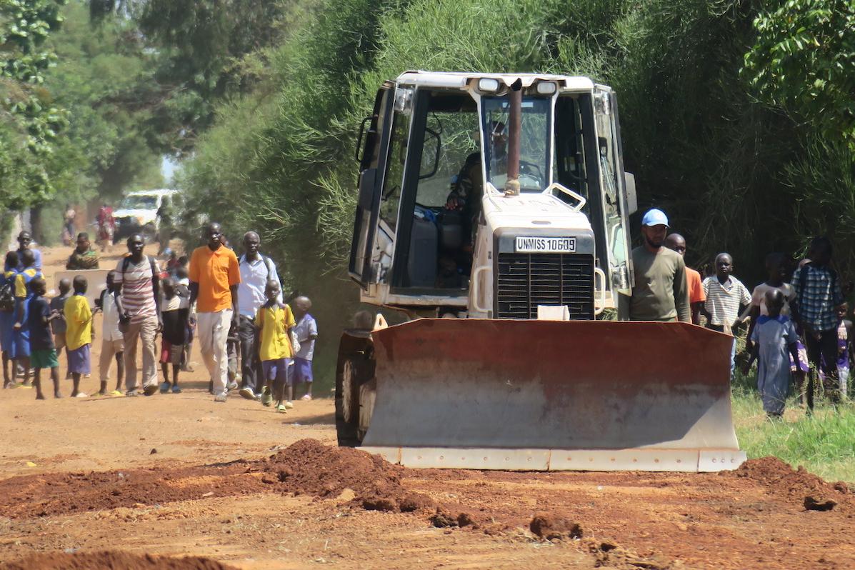 Poetry in motion: Man, machine and pedestrians in perfect harmony, all thanks to Bangladeshi peacekeepers serving with UNMISS in Torit. Photos: Moses Yakudu/UNMISS