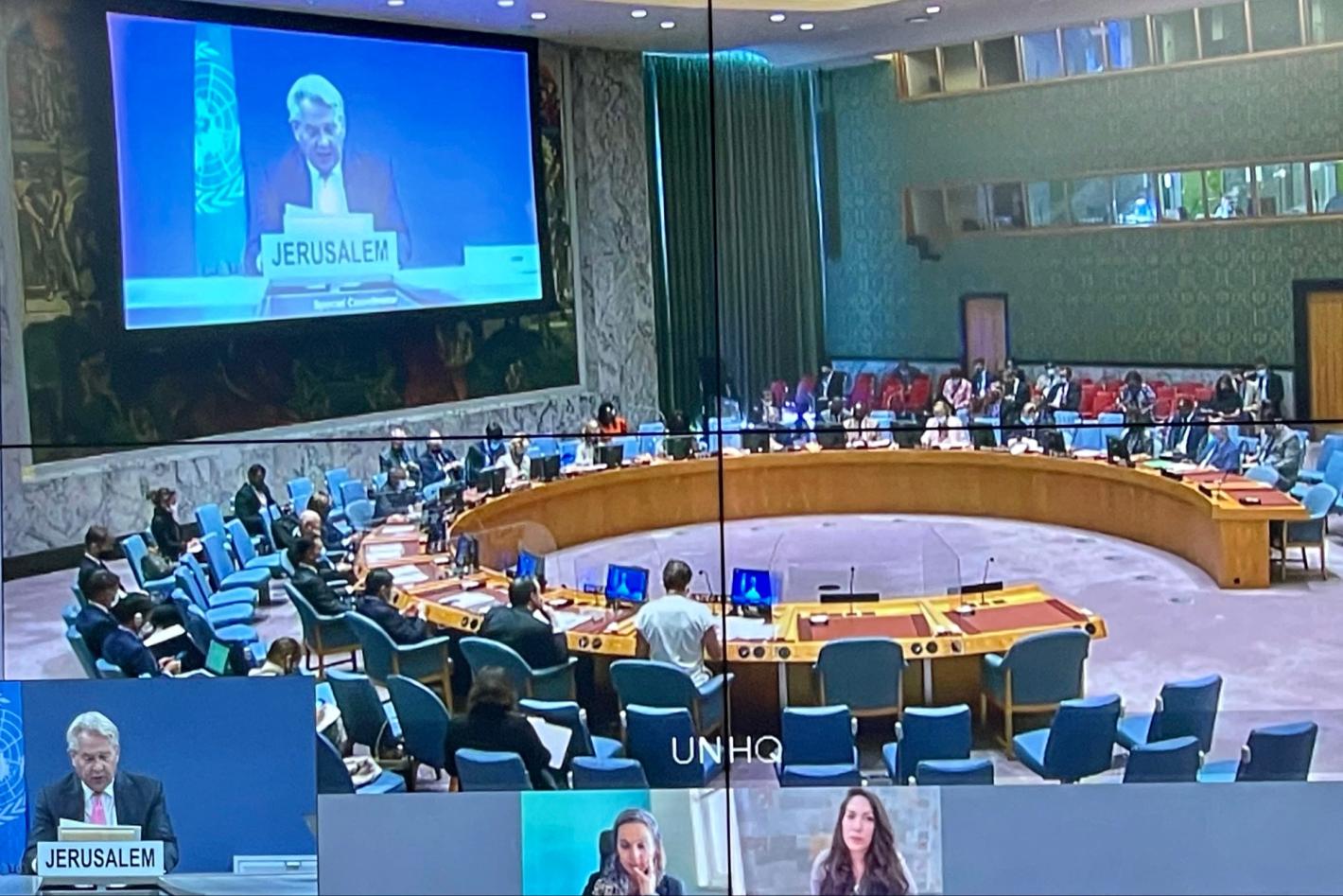 UN Special Coordinator for the Middle East Peace Process, Tor Wennesland briefs (over video conference) the Security Council on the Situation in the Middle East, including the Palestinian question (UNSCO Photo/Daniela Penkova - 29 September 2021)