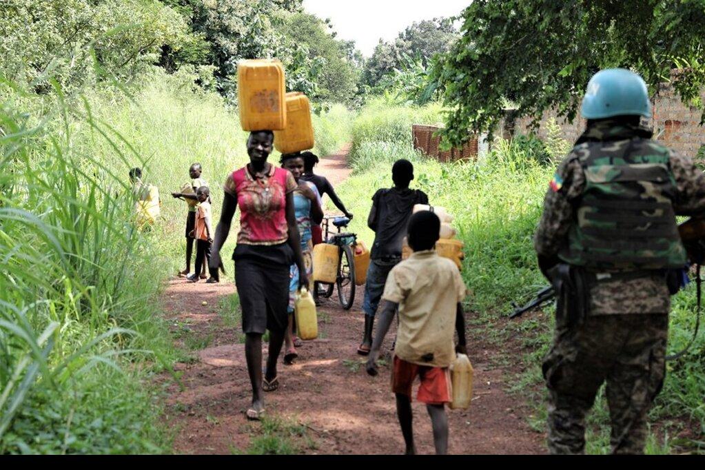 UNMISS peacekeepers protecting women in Tambura fetching water. These patrols have resulted in significantly less incidents of violence against women in the area. Photos: Denis Louro Oliver/UNMISS.